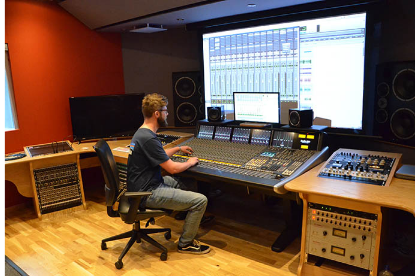 GF Control Room featuring the SSL Duality console, lot's of outboard and projection with screen for the 5.1 configured monitoring system.